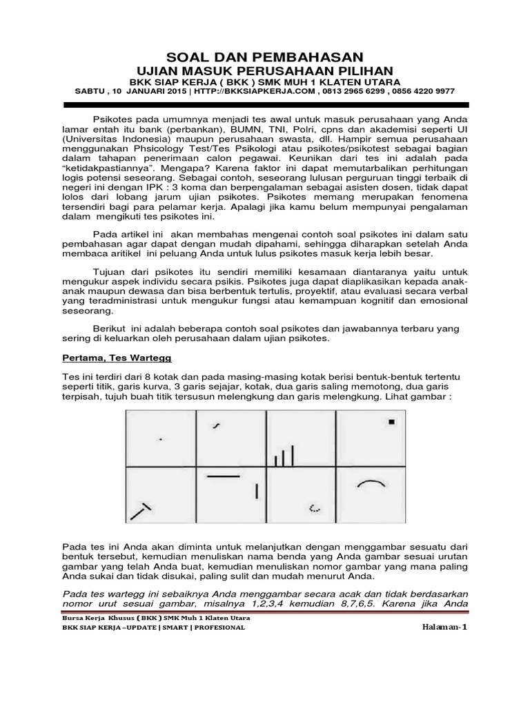 Ini adalah contoh jawaban dari soal tes wartegg atau wartegg test : Последние твиты от psikotes kerja (@sukses_psikotes). Soal psikotes wartegg adalah tes psikologi, tes kepribadian untuk mengetahui dan meneliti karakter kepribadian peserta tes lihat: Psikotes wartegg, download soal psikotes warteg, contoh soal psikotes wartegg test, contoh soal psikotes yang pertama ebook psikotes dan yang kedua ini ebook tips cepat kerja anti gagal. Pada lembar kerja tes psikotes berisi 8 kotak yang nantinya kamu akan diminta untuk menggambarnya, kemudian menuliskan urutan gambar yang dibuat, nomor gambar yang paling.